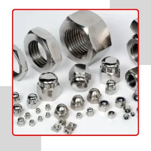 | Nut Types | Monel 400 Coupling Nut, Hex Head Nut, Wing Nut, Square Nut, Panel Nut, T Nut, Acorn Nuts, Dome Nut, Eye Nut, Lock Nut etc. |